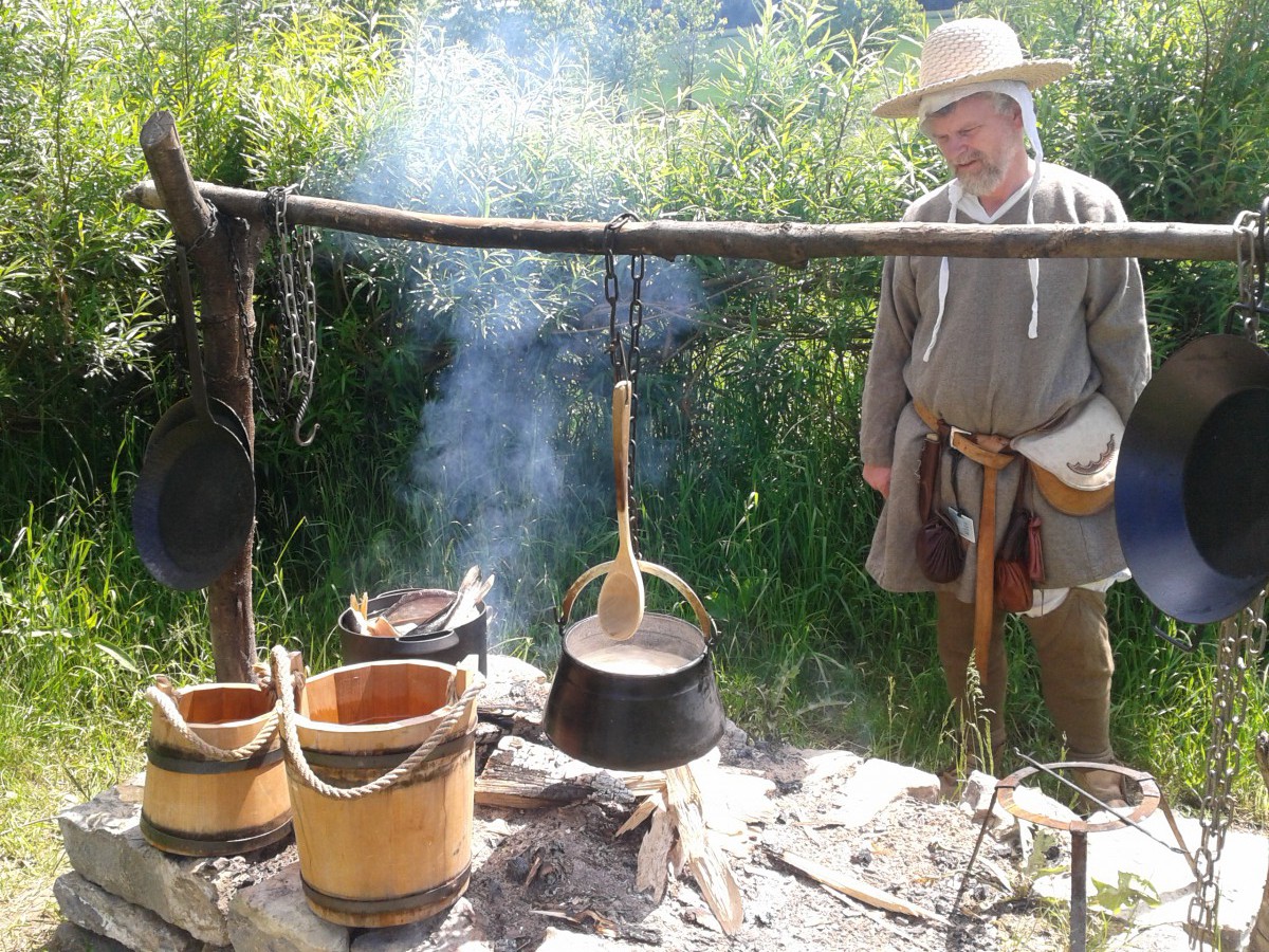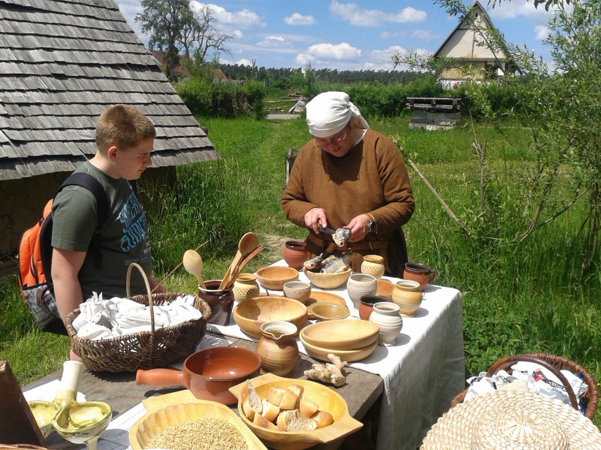 In einer anderen Parzelle gab es sehr viele unterschiedliche Kräuter zu entdecken. Hier wurden unter anderem Hirsebrei, sowie ganz andersartige Soßen gekocht. An die Zutaten dieser Köstlichkeiten können wir uns jetzt allerdings nicht mehr im Einzelnen erinnern, aber den Geschmack werden wir wohl immer für uns bewahren können. Auch getrockneten Fisch durften wir probieren, eine Spezialität, die heute noch, vor allem in Russland, sehr gerne als abendlicher Snack zum Bier gegessen wird.