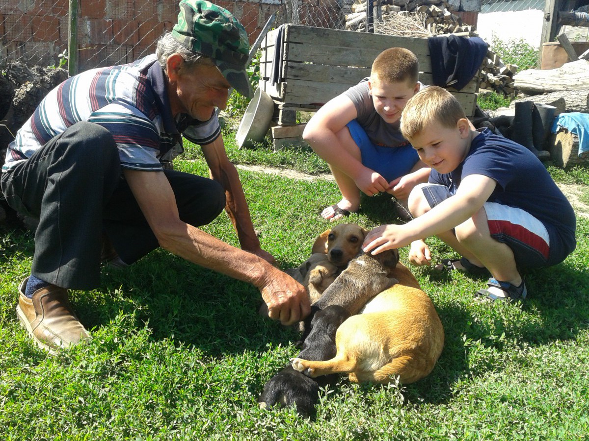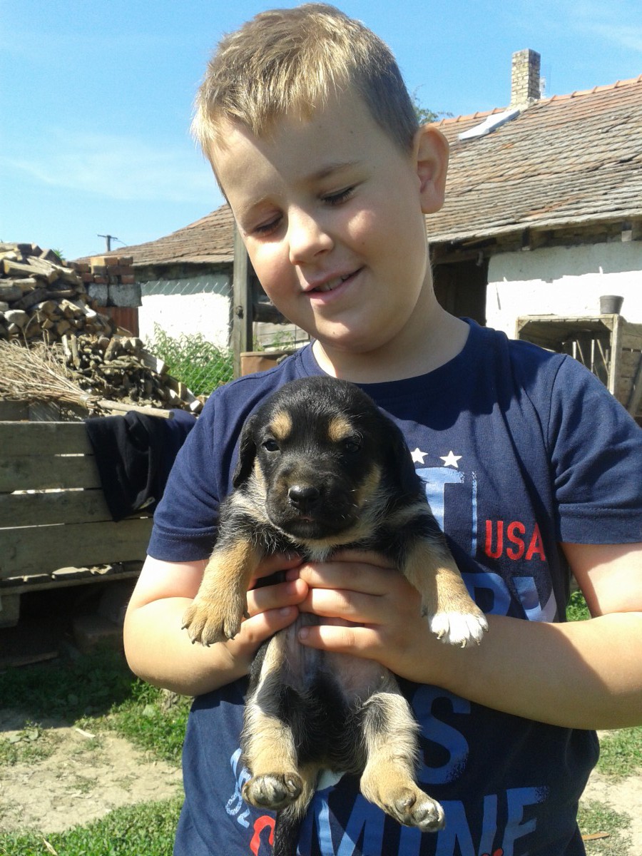 Klar, dass diese vier niedlichen Hündchen auch unsere Aufmerksamkeit voll in Anspruch nahmen. Um die Kleinen nun streicheln und auf den Arm nehmen zu können mussten wir uns nun ganz vorsichtig und behutsam nähern, da die Welpen von Flohs Mutter Pici bewacht und verteidigt wurden. Onkel József und natürlich auch Floh halfen uns dabei der Mutter die Angst vor uns zu nehmen, so dass wir bereits schon nach ganz kurzer Zeit mit den neugierigen Welpen spielen konnten.