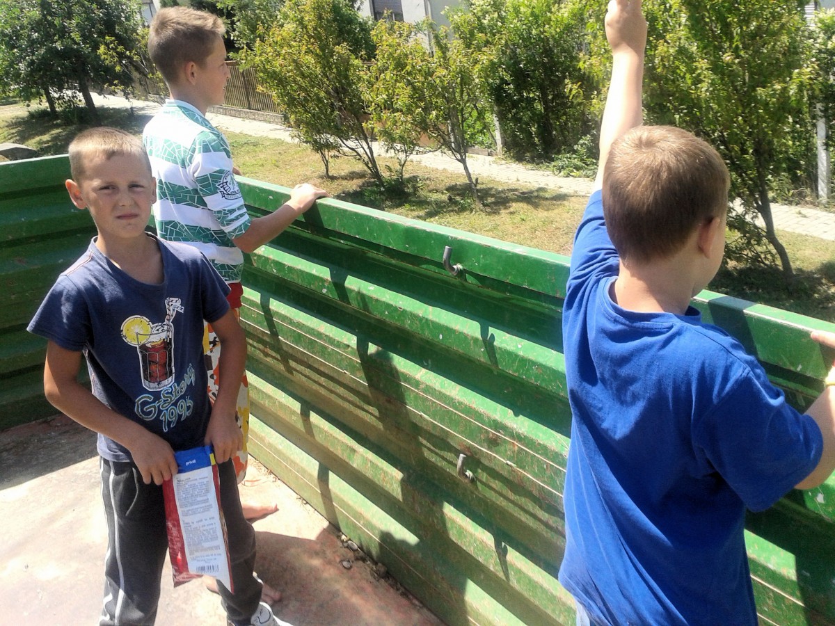 Die Hauptschule von Györgytarló wird auch von Schülern aus den beiden Nachbardörfern Dorkó und Apróhomok besucht. Da uns unser erster Vorsitzender uns eine neue Lebenserfahrung mit auf den Weg geben wollte, entschied er sich mit uns nach Dorkó zu fahren, um uns dort zu zeigen, wie Menschen ohne ein ortsansässiges Lebensmittelgeschäft leben können, bzw. wie Familien ohne Fließendwasser ihren Alltag bewerkstelligen.