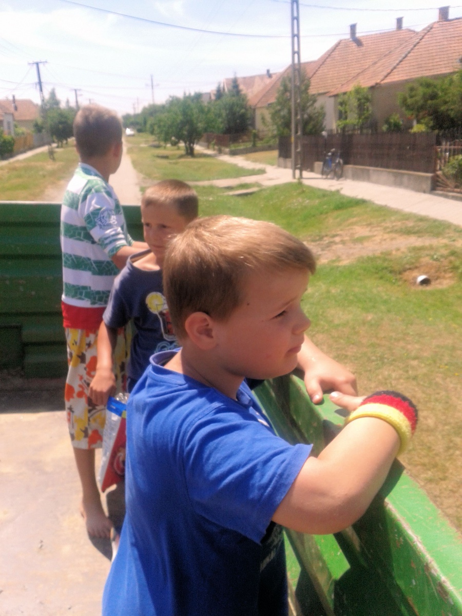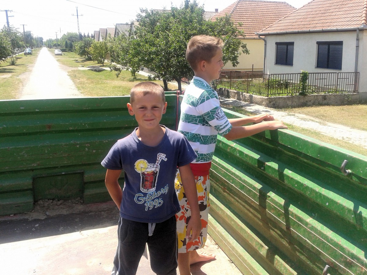 „Mit Verlaub, so cool und unberechenbar hat selten etwas geschaukelt!“, und wir mussten uns auf dem Anhänger schon sehr sehr gut festhalten, um nicht wie wild durch die Gegend geschleudert zu werden. So ertönte unser lautes Freudengegröle durch das ganze Dorf, vor allem dann, wenn wir leicht diagonal abgesenkt zum „Straßenverlauf“ durch die Felder polterten. Sándor Lendvai servierte uns mit dieser Fahrt tatsächlich einen einschlägigen Einblick in die tiefsten Einsenkungen der näheren Umgebung, und das mit einer Wucht, bei der wir wirklich jedes einzelne Loch bis ins tiefste Mark hinein spüren konnten.