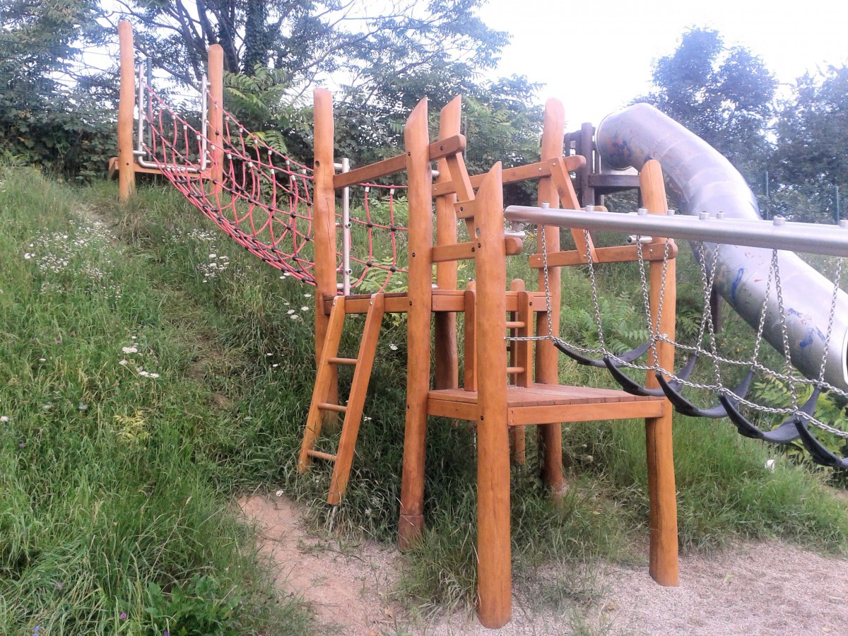 8. Der Max-Berk-Spielplatz erhält von uns 5 Punkte Abzug, weil Spielgeräte entweder kaputt (Seilbahn), unbrauchbar (Klettergerüst) oder verletzungsgefährdend (Wellenrutsche) sind.