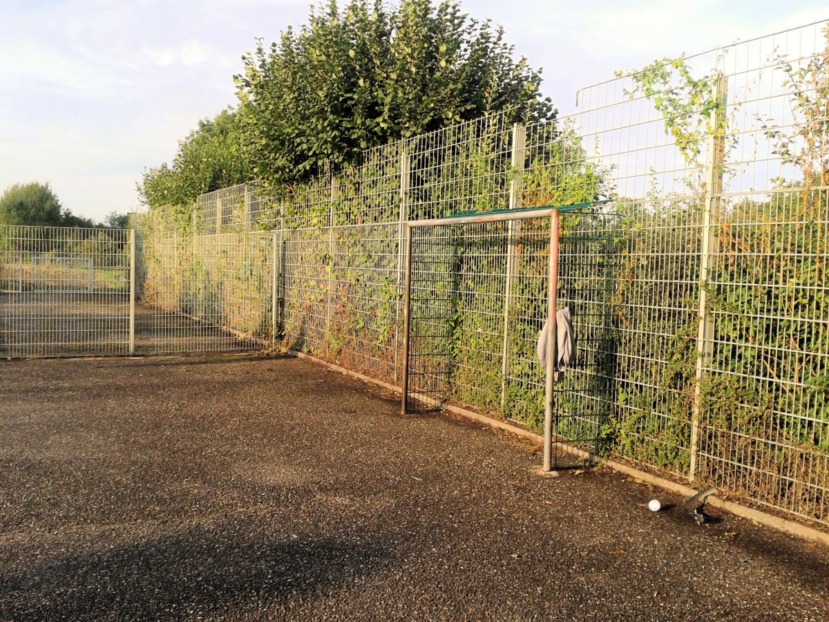 15. Der Steinbolzer. Ein unendliches Ausmaß von Dornen- und Brombeerhecken, allergischen Pflanzen und Gestrüpp erwartete uns dieses Jahr in dieser Hochburg für Allergiker. Einen Basketballkorb gibt es auch nicht mehr. Müll, Dreck,