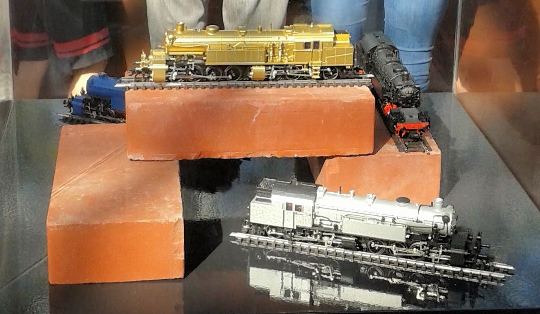 Neben dieser sehenswerten Anlage, gab es aber auch andere Schätze aus dem Deutschen-Bundesbahnbereich zu bewundern. Alte Sitzkabinen waren aufgebaut, die von Schaffnern umgeben waren. Auch Bauarbeiter posierten für eigens dafür erstellten Gleisanlagen, und sehr viele Modellautos, sowie wertvolle goldene und silberne Sondermodelle spiegelten uns aus den Glasvitrinen entgegen.